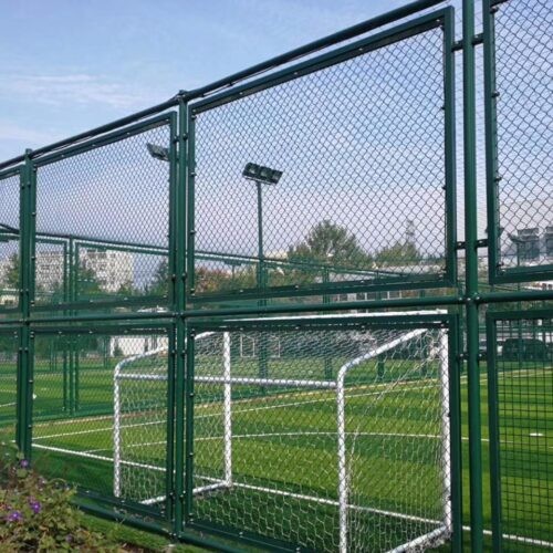 سياج ربط السلسلة الخاص بنا عبارة عن سياج معدني مطلي بـ PE/PVC، معروف بأسماء مختلفة مثل الشباك السلكية، سياج شبكي سلكي، سياج سلكي متسلسل، سياج الأعاصير، سياج الأعاصير، أو سياج شبكي ماسي. إنه الخيار المثالي لسياج الملاعب الرياضية، خاصة في المناطق التي تكون فيها المقاومة العالية للصدمات والتآكل والرطوبة أمرًا بالغ الأهمية. هذه الأسوار مصنوعة من الفولاذ الطري أو الفولاذ المقاوم للصدأ أو الأسلاك الحديدية، وهي بمثابة حواجز آمنة وتستخدم على نطاق واسع في المدارس والحدائق والملاعب وملاعب كرة القدم للحفاظ على الكرات داخل السياج وحماية الأشخاص خارج السياج.